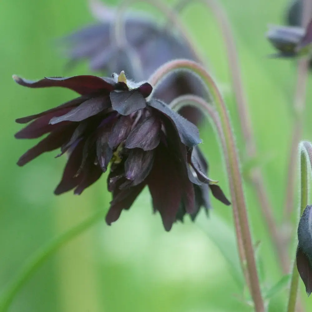 Spring to summer-flowering perennial with sultry, black-purple double-flowers and ferny foliage