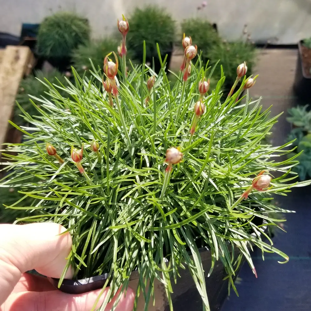 Beautifully soft pastel pink-flowering Sea Thrift with grassy foliage, flowering throughout summer