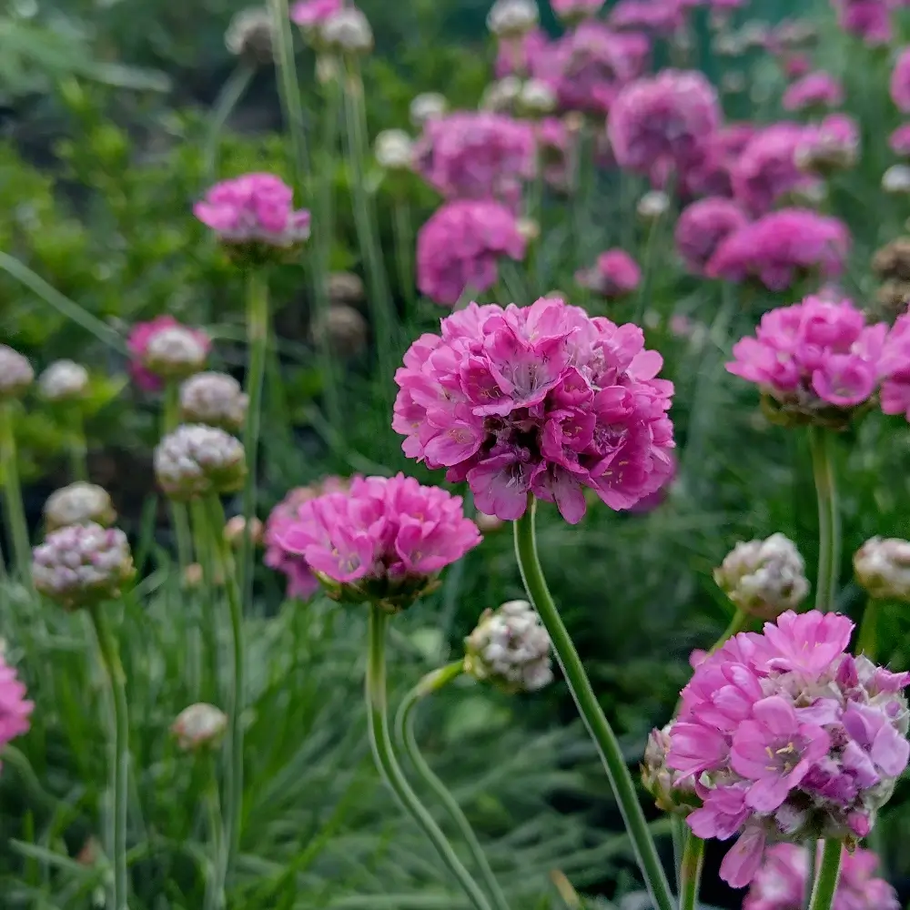 Bold pink-flowering Sea Thrift with grassy foliage flowering throughout summer