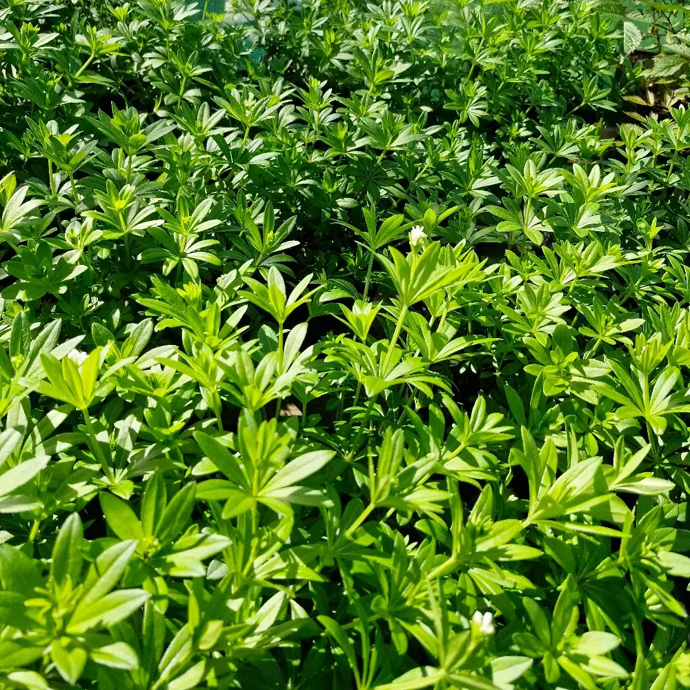 Ground-covering woodland perennial with mats of pure white flowers in spring