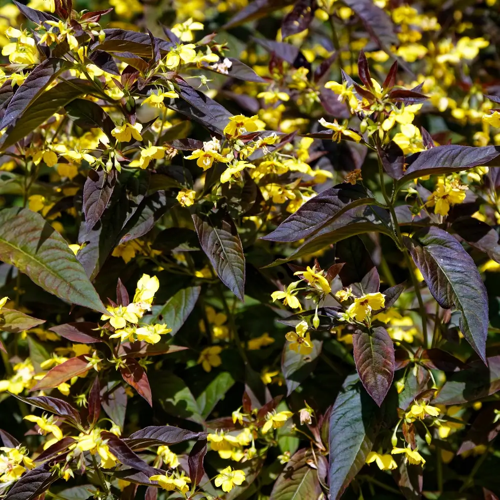 Hardy perennial with pale-yellow flowers above attractive, upright-growing coppery-brown foliage