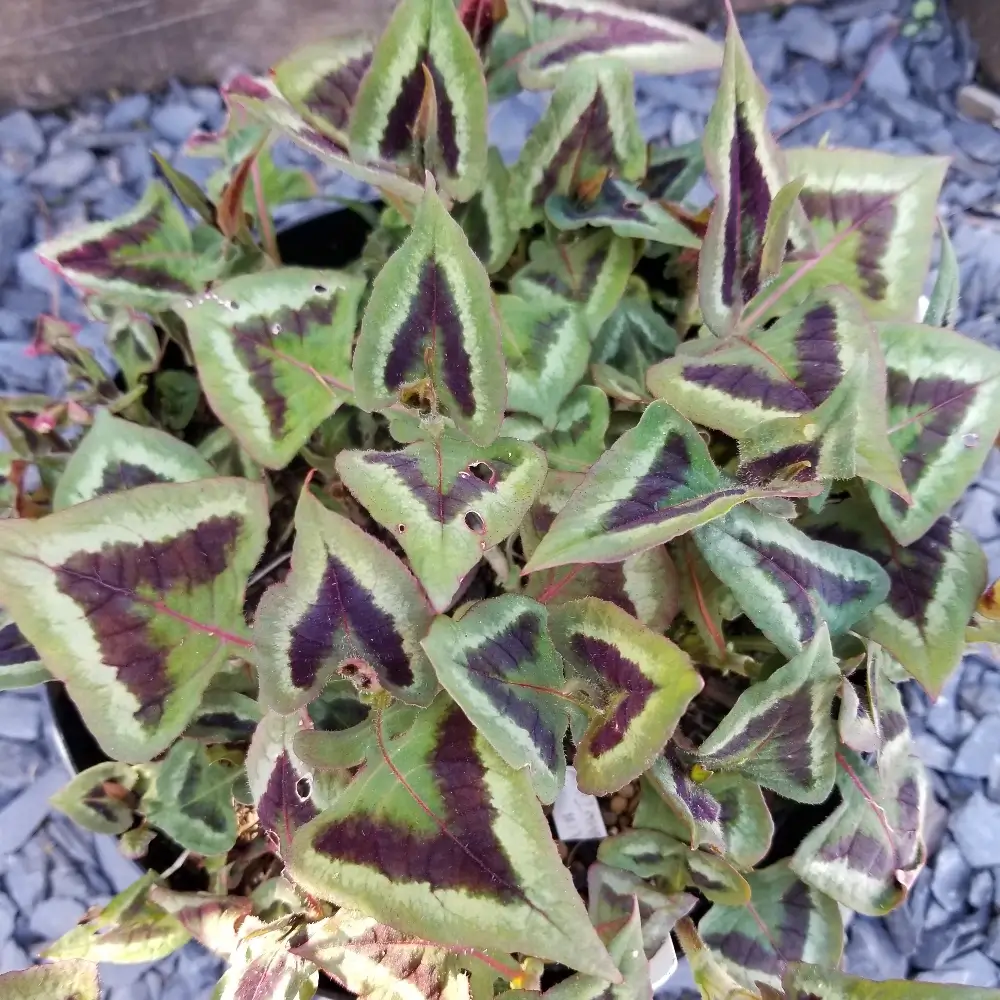 Lovely plant grown mainly for its striking foliage with bands of varied colours.