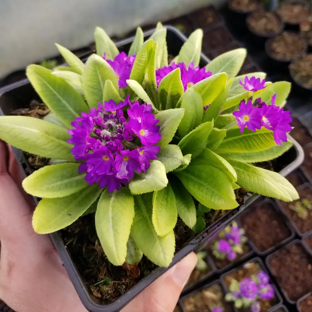 Mauve-purple globes of flowers held above clumps of vibrant green foliage in spring