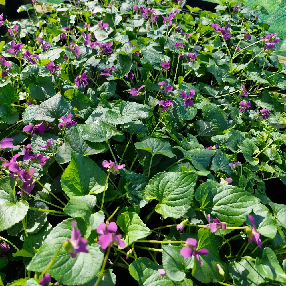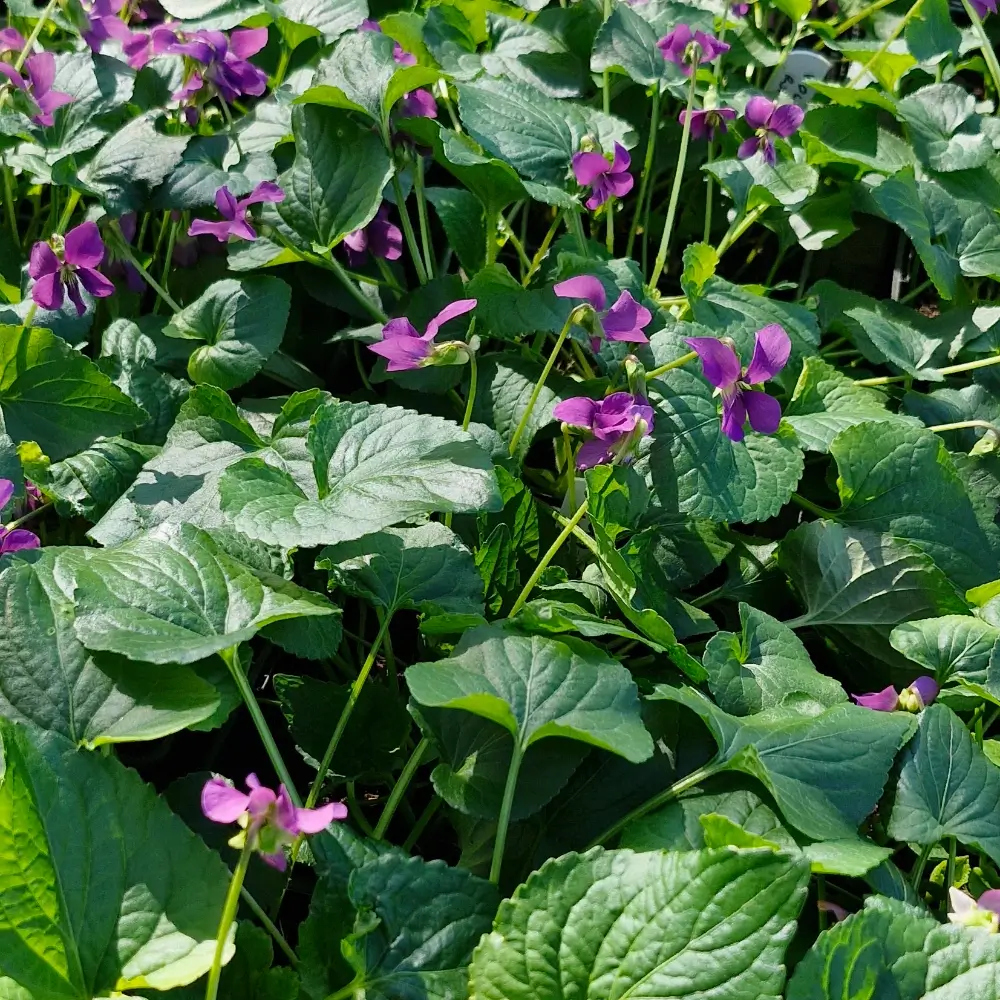 Pretty low-growing perennial Violet with heart-shaped foliage and bright purple-red flowers